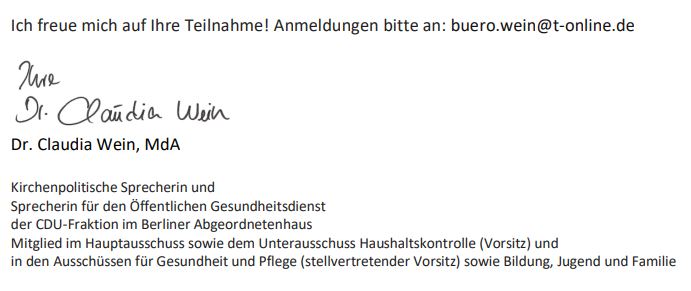gemeinsam mit Frau Annette Grätz, Sozialbeauftragte der Frauen Union Charlottenburg-Wilmersdorf, laden wir herzlich ein zum Thema „Gute Pflege braucht gute Politik“