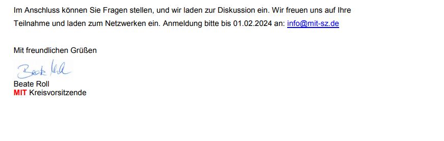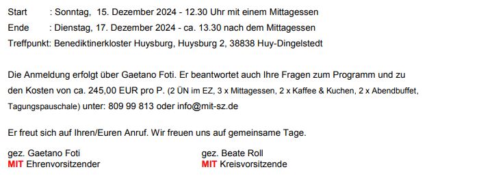 Die Anmeldung bitte bis zum 03.01.2024 an info@mit-sz.de. Wir freuen uns auf Sie!