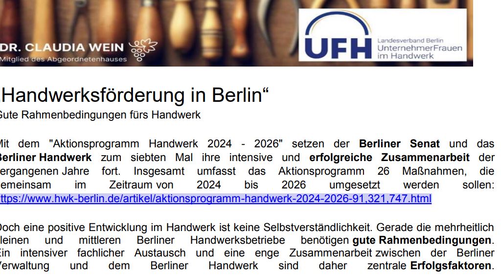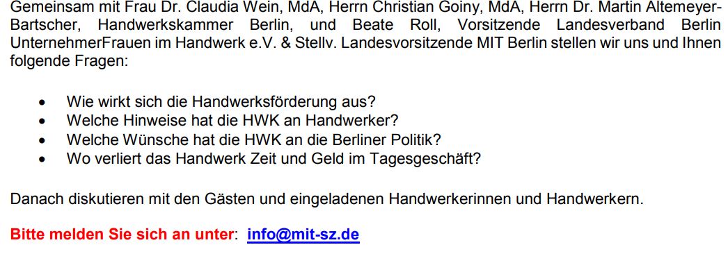 Liebe Mitglieder der MIT Steglitz-Zehlendorf, der FU Steglitz-Zehlendorf und der UFH UnternehmerFrauen im Handwerk, liebe Freundinnen, Freunde und Interessierte,