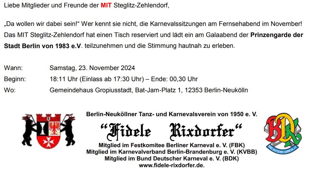 Liebe Mitglieder und Freunde der MIT Steglitz-Zehlendorf,