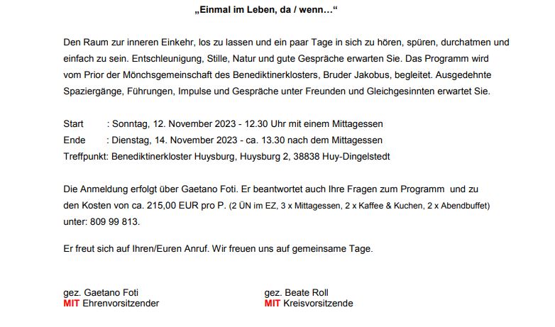 Anmeldung erbeten -> zum 25.11.2025 am info@mit-sz.de
