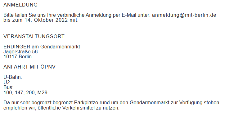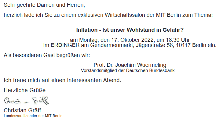 „Wir freuen uns, wenn wir Sie sowie Gäste und Mitglieder der MIT Berlin bei dieser Veranstaltung begrüßen können.“- so Frau Wolf.