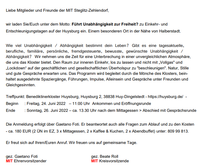 Liebe Mitglieder der MIT Steglitz-Zehlendorf,