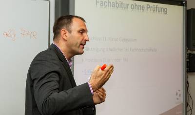 Rackow-Schulen: 140 Jahre Erfahrung im Bereich der beruflichen Aus- und Weiterbildung. Vortrag u. Diskussion mit Dipl.-Kfm Tim Balzer. Fotos von Michael Königs (www.koenigs-fotografie.de).